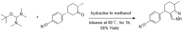 (cis)-4-(4-Methyl-3-oxo-cyclohexyl)benzonitrile (0.55 g, 2.58 mmol) is added to toluene (10.0 mL) and tert-butoxybis(dimtheylamino)methane (0.67 mL, 3.22 mmol) and stirred at 120° C for 16 hours.