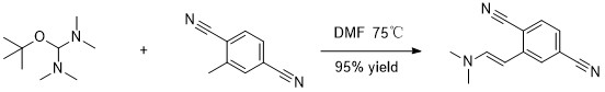 Methylterephthalonitrile (1.42g, 9.99mmol) and Bredereck's reagent (3.48g, 19.98mmol) were dissolved in DMF (15mL).