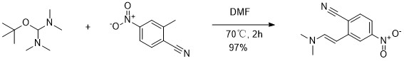 A mixture of 2-methyl-4-nitrobenzonitrile (Aldrich, 5.0 g, 31 mmol) and 1-(1,1-dimethylethoxy)-N,N,N',N'-tetramethyl-methanediamine (12.2 mL, 59 mmol) in dry DMF (8 mL) was stirred at 70° C. for 2 h under N2.